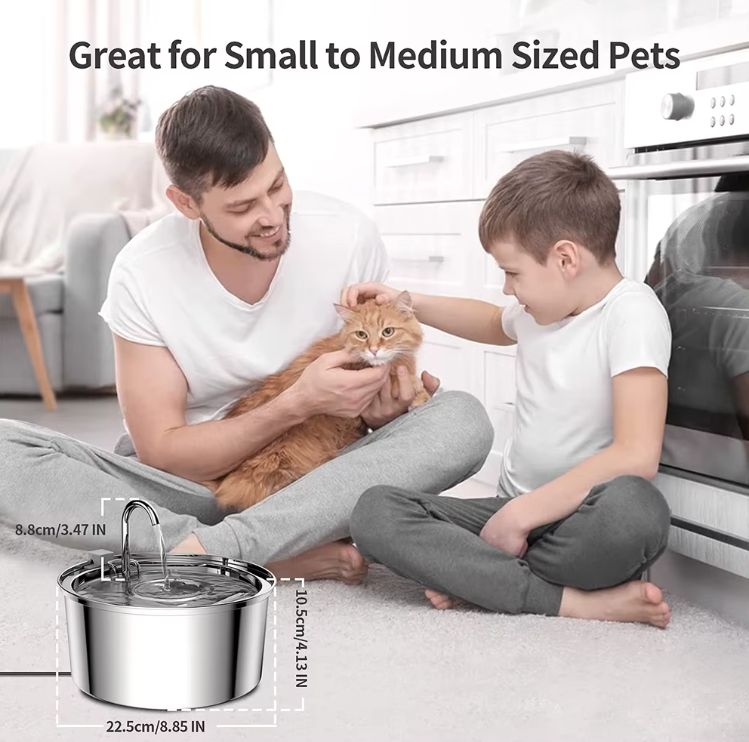 Fur, food, and dust can turn stagnant bowls into germ hotspots, causing odors and health risks. Circulating water keeps things fresh, clean, and safe for your pet.